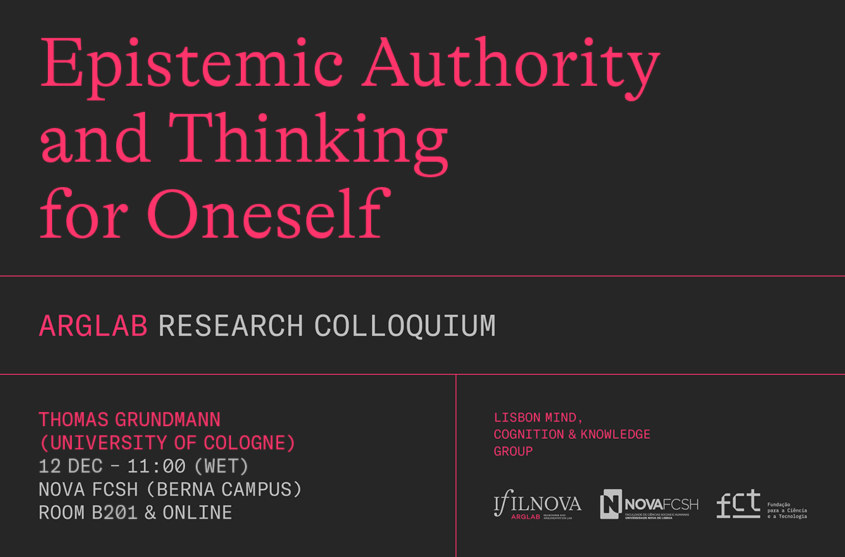 This event is part of the ArgLab Research Colloquium organised by Maria Grazia Rossi and Giulia Terzian at the Laboratory of Argumentation, Cognition and Language of the NOVA Institute of Philosophy. For any inquiries, please contact Maria Grazia or Giulia.