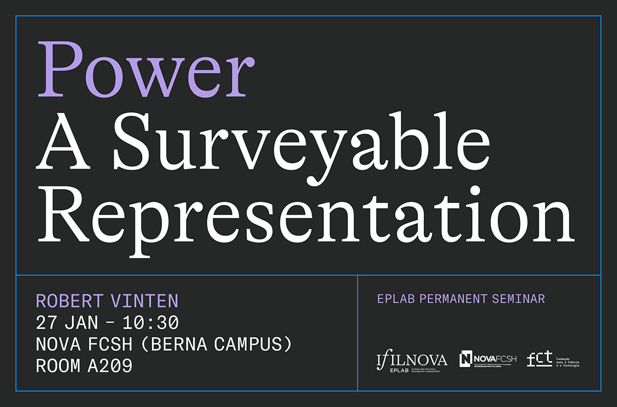 The fourth session of the EPLab Permanent Seminar will be led by Robert Vinten who will talk about “Power: A Surveyable Representation”. The session will take place on 27 January at 10:30 in room A209 of NOVA FCSH (Berna Campus) and will be held in English.