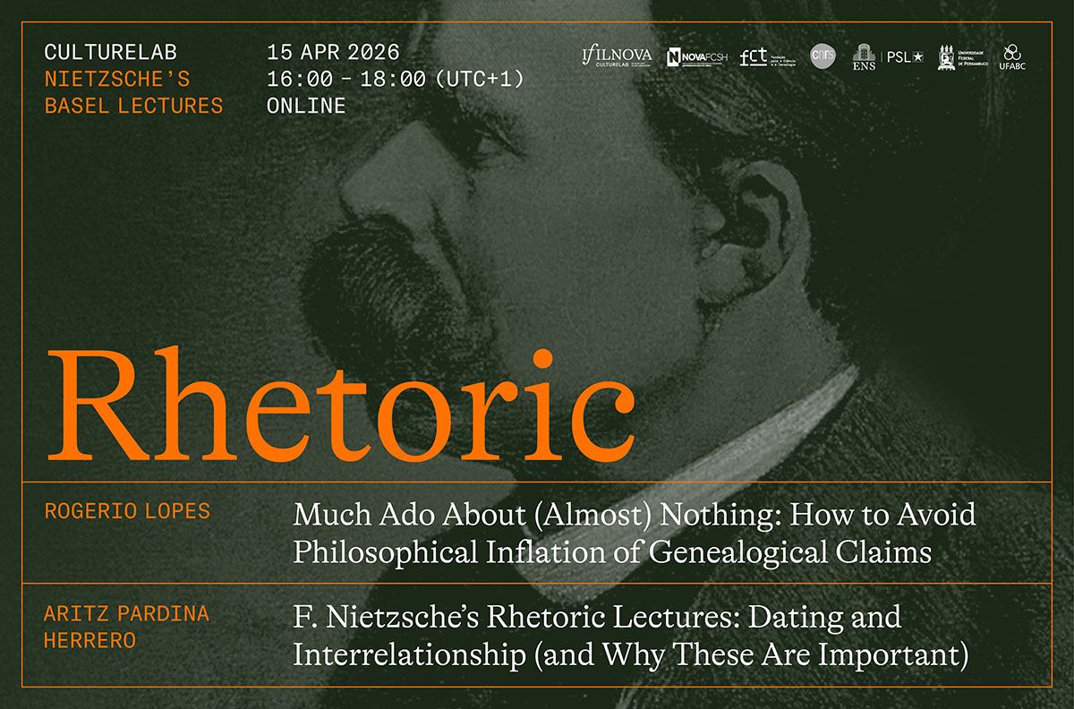 The eighth session of the International Seminar Nietzsche’s Basel Lectures will be dedicated to the theme Rhetoric and will take place online on 15 April 2026 (Wednesday), from 16:00 to 18:00 (UTC+1). The session will be led by Rogério Lopes, with a presentation entitled “Much Ado About (Almost) Nothing: How to Avoid Philosophical Inflation of Genealogical Claims”, and Aritz Pardina Herrero, who will speak on “F. Nietzsche’s Rhetoric Lectures: Dating and Interrelationship (and Why These Are Important)”.