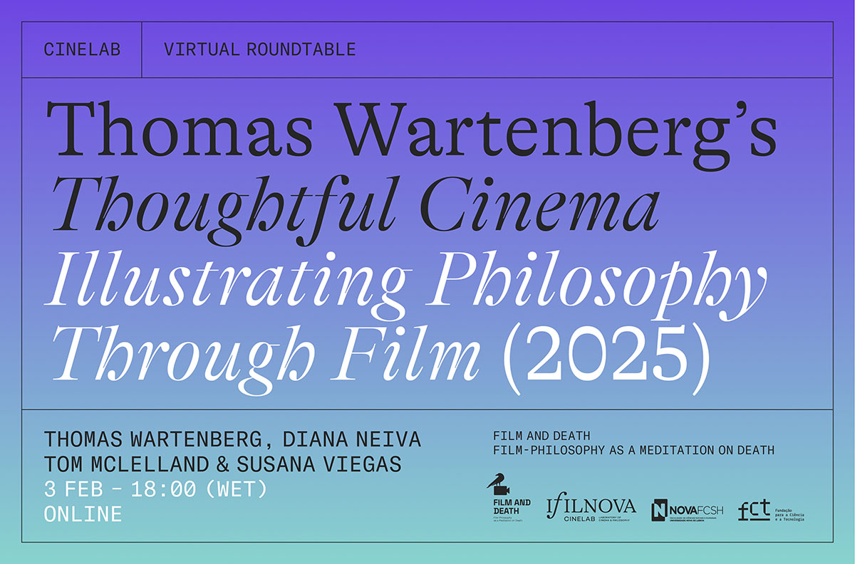 The session will open with short reflections by Diana Neiva and Tom McClelland, followed by an open discussion and questions from the audience. Wartenberg’s “Thoughtful Cinema: Illustrating Philosophy Through Film” raises timely questions about the philosophical capacities of film—how cinema can illustrate or even perform philosophy, what might be gained or lost when philosophy is carried out through images and sounds, and how the field of film-philosophy may develop in light of Wartenberg’s proposals. To encourage active participation, an excerpt from the book’s Conclusion will circulate to all registered attendees in advance. Participants are also welcome to send questions ahead of time to susanaviegas@fcsh.unl.pt, helping shape the conversation.