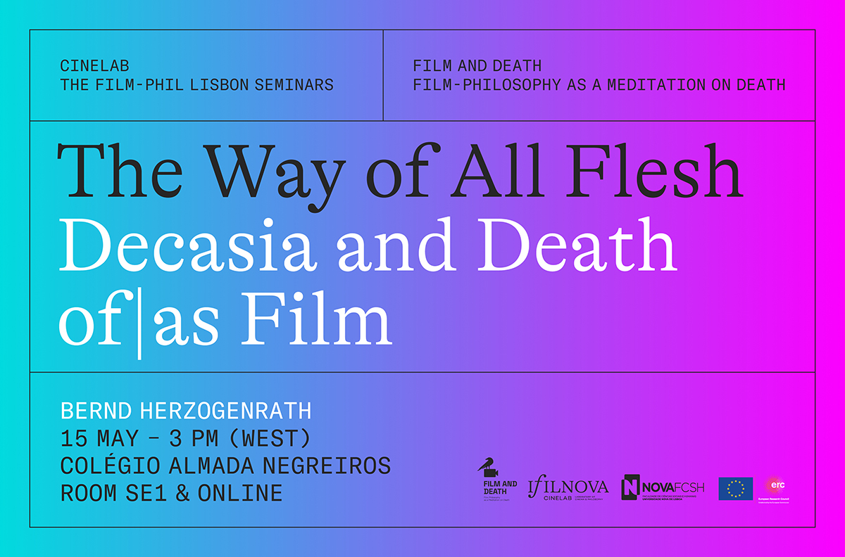 Em maio, o seminário Film-Phil de Lisboa (2023-2024) estará a cargo de Bernd Herzogenrath (Goethe University of Frankfurt, Alemanha), que falará sobre “The Way of All Flesh: Decasia and Death of|as Film”. A sessão será em inglês e terá lugar no dia 15 de maio às 15h00 (hora de Lisboa), na sala SE1 do Colégio Almada Negreiros e online, via Zoom.