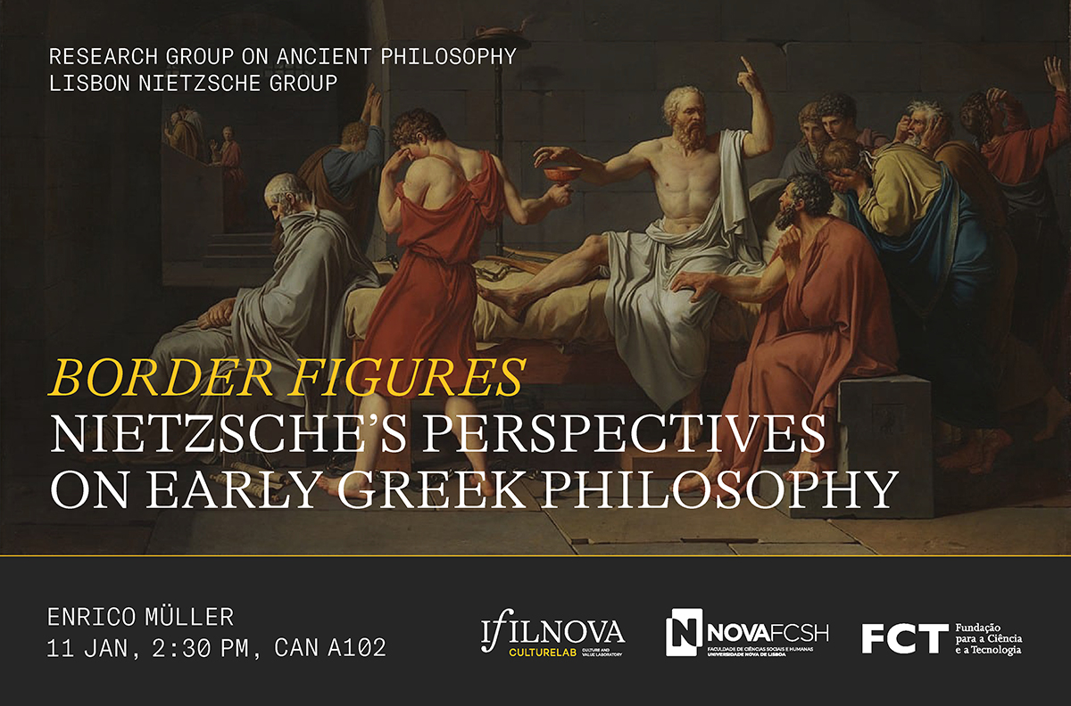 No dia 11 de Janeiro de 2023, no quadro das atividades do Grupo de Pesquisa em Filosofia Antiga e do Grupo de Estudos sobre Nietzsche, Enrico Müller (Universidade de Leipzig) dará uma palestra sobre a leitura nietzschiana dos primeiros filósofos gregos. A palestra terá lugar na sala A102 do Colégio Almada Negreiros, entre as 14:30 e as 16:30. Todos serão bem-vindos!
