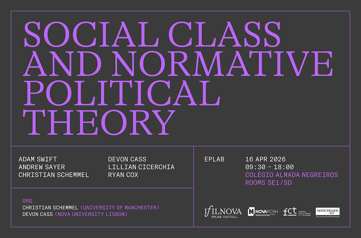 Este workshop é dedicado à discussão da relevância normativa da classe social, mobilizando uma pluralidade de diferentes abordagens sociológicas e normativas, incluindo, mas não se limitando a, perspetivas (neo)marxistas. Mais informações disponíveis em inglês.